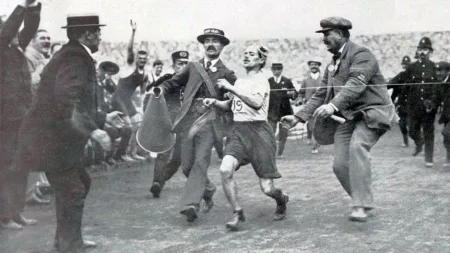TrendingHistoryThe 1904 Olympic Marathon in St. Louis had one water station for the entire 25-mile course. The first man across the finish line had ridden in a car for 11 miles. The actual winner was fed strychnine and brandy by his trainers and was hallucinating at the finish. A South African runner was chased a mile off course by wild dogs. Only 14 of 32 runners finished.20 hours ago