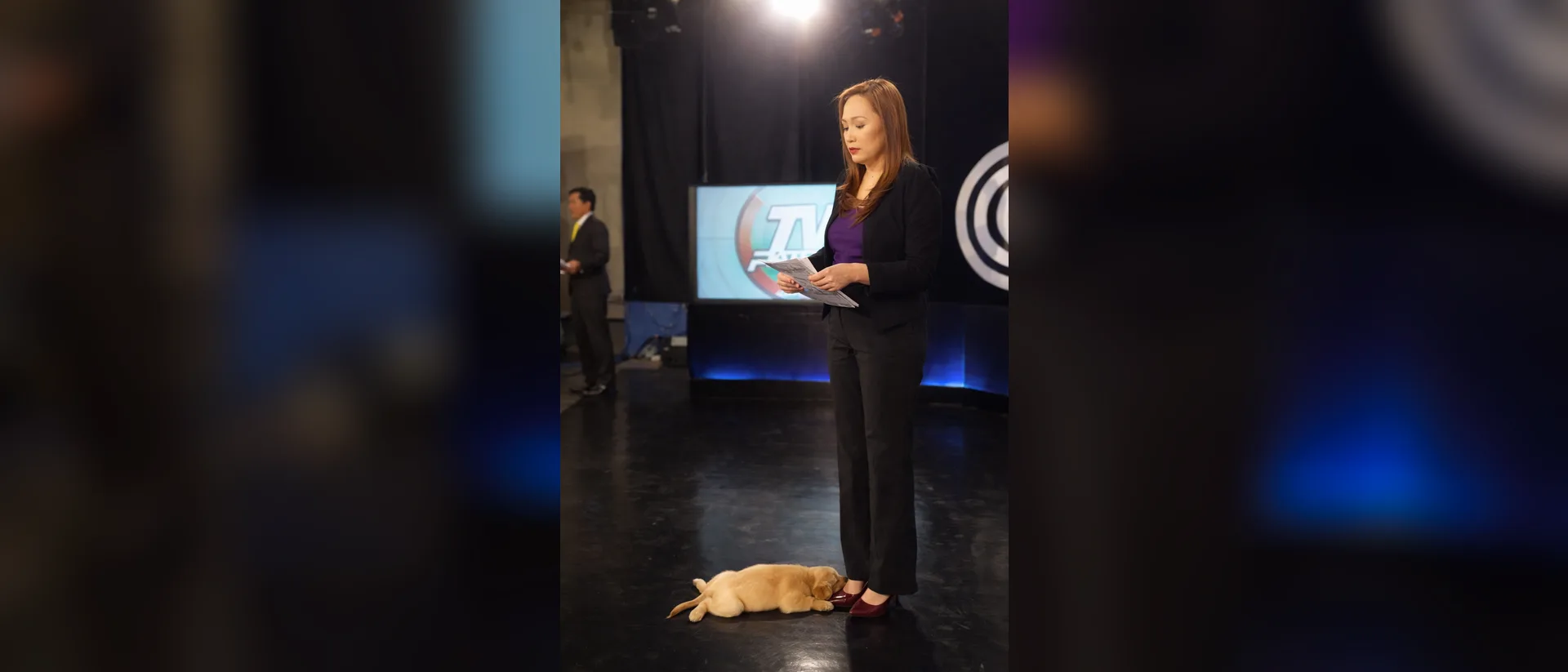 Somewhere in the ABS-CBN Davao studio, a newscast was about to go live. The anchors stood at their marks, scripts in hand, studio lights glaring. Everything looked perfectly normal — except for the golden puppy sleeping on the floor between the female anchor's red heels.
