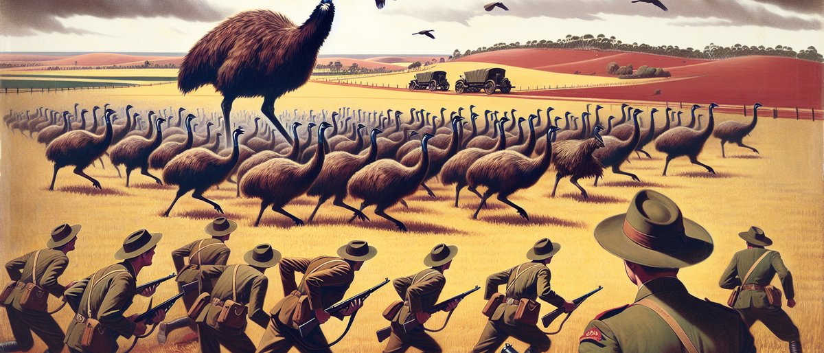 In 1932, the Australian military deployed soldiers armed with machine guns to combat an invasion of 20,000 emus destroying farmland in Western Australia. After six days of failed attacks, the emus outsmarted the soldiers, and the military withdrew in defeat.