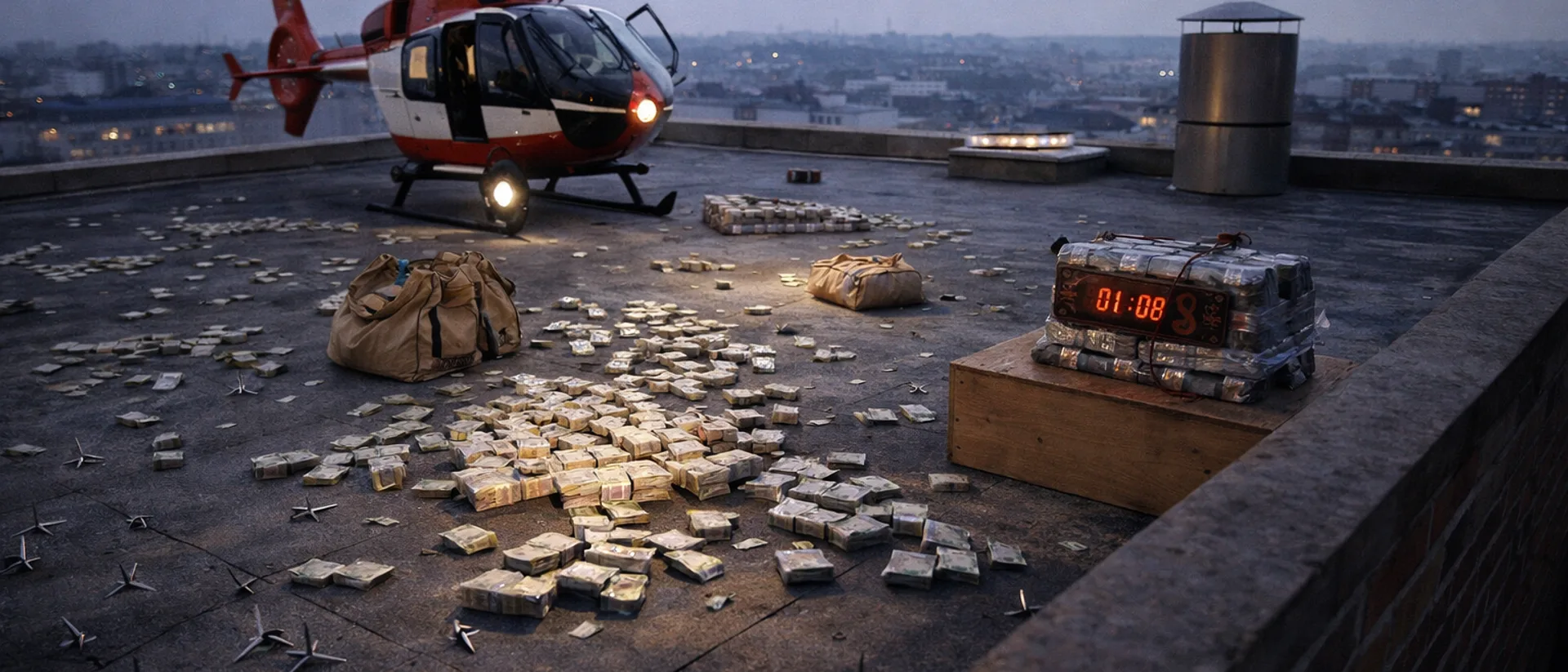 The thieves smashed through a skylight, descended into the vault, loaded bags of cash, and flew away in the helicopter. The entire operation took minutes.