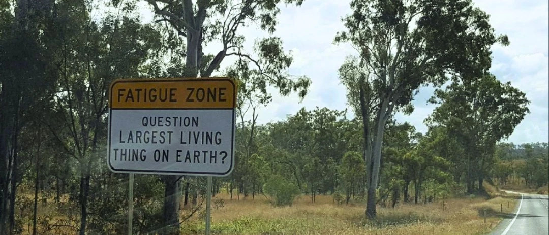 In Queensland, the Transport and Main Roads department has been installing what it calls "Fatigue Zone" signage since 2012. The concept is simple: one sign poses a trivia question — something like "What is the largest living thing on Earth?" — and a few kilometres down the road, another sign reveals the answer.