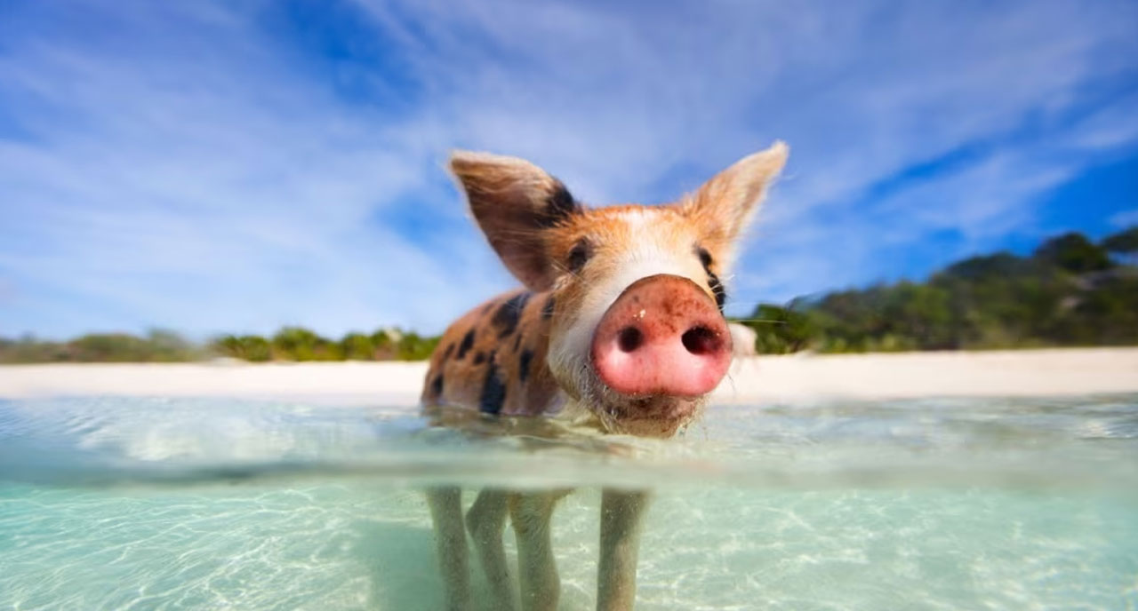 Swimming Pigs Rule an Island in the Bahamas